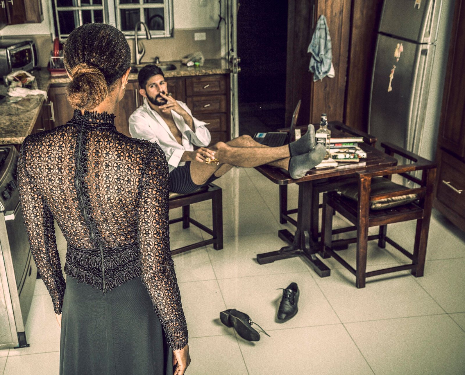 Amid the warm, languid light of Maraval, romance drifts effortlessly between the everyday and the extraordinary. Esi Hayfron Benjamin and Stephen Hadeed Jr. inhabit a tumultuous world of whispered promises and homebound playfulness, their silhouettes softened by flowing fabrics, delicate textures, and vibrant hues. Mood and desire intertwine, and style becomes an intimate story told frame by frame.