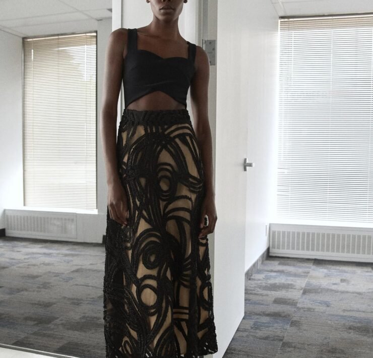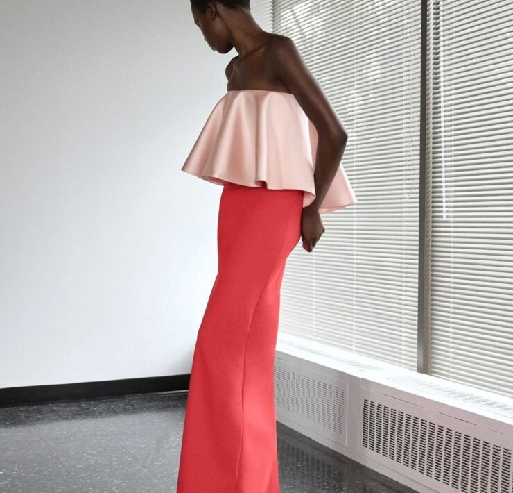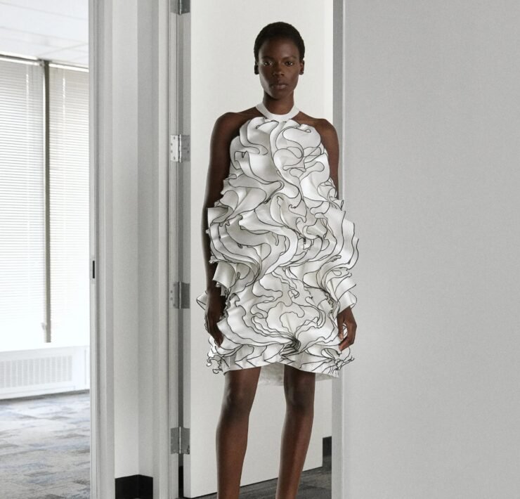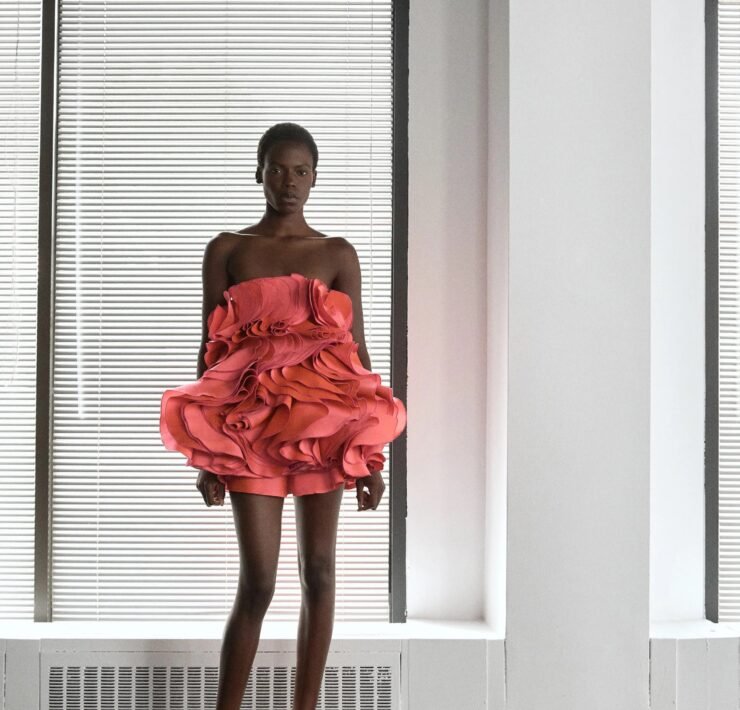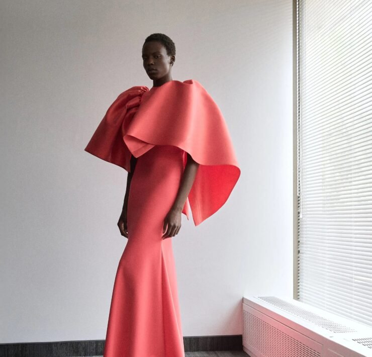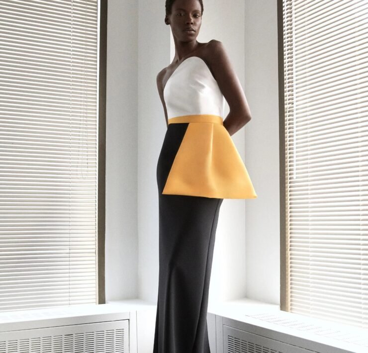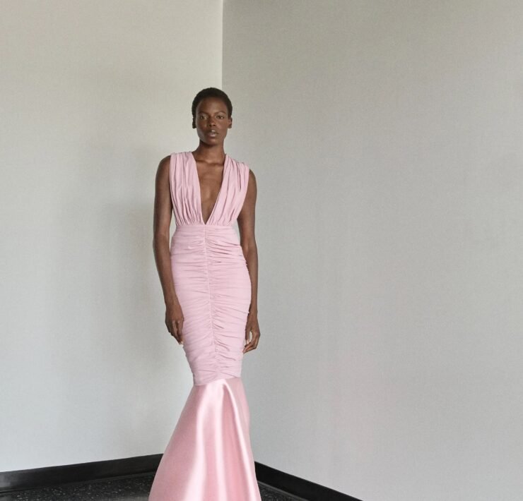 Kirk Pickersgill of Greta Constantine turned to his Jamaican roots for Spring 2026, blending cultural pride with his signature red-carpet drama. Though raised in Canada, the designer recalled trips back to Jamaica, where music, bold colour, and family shaped his perspective.