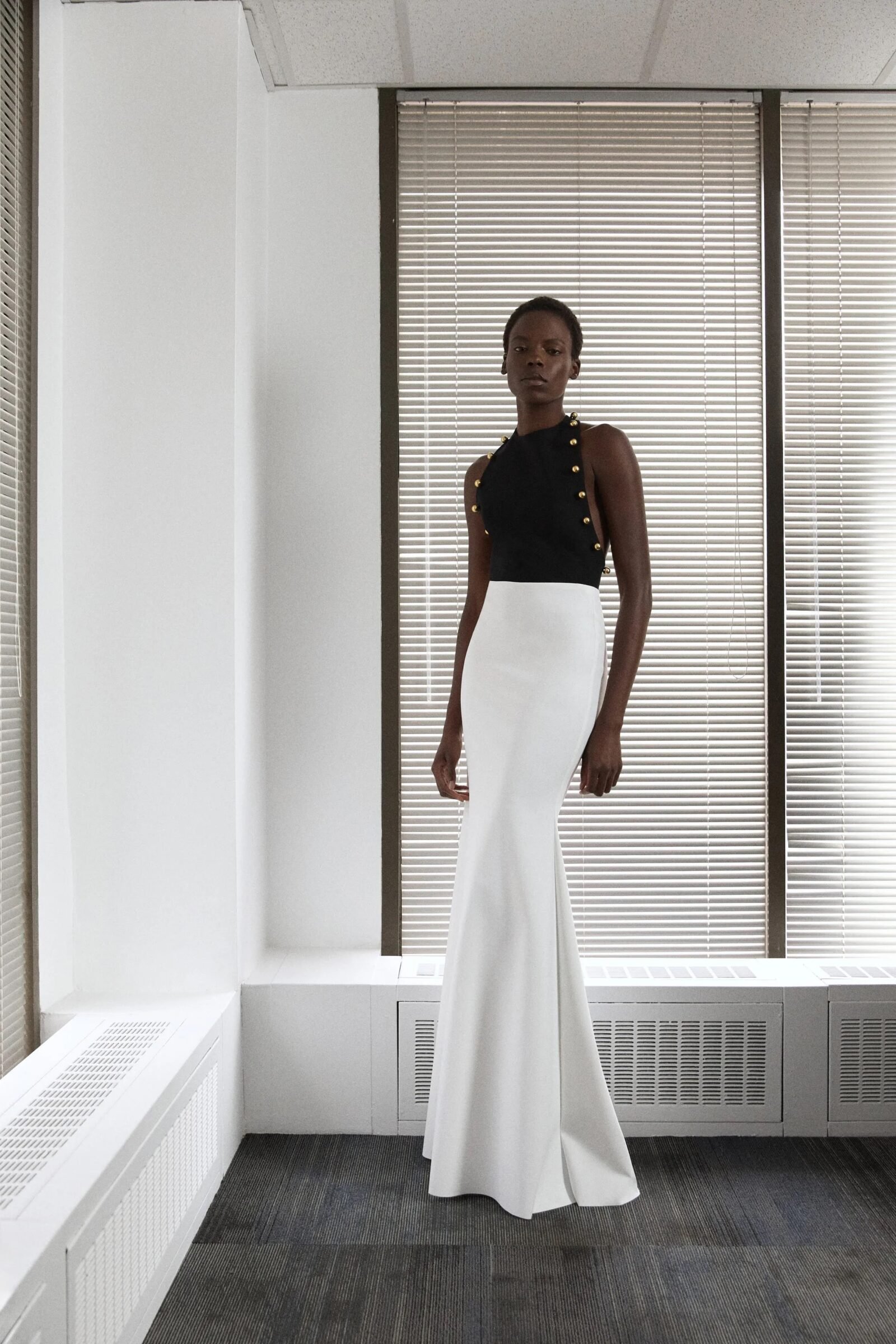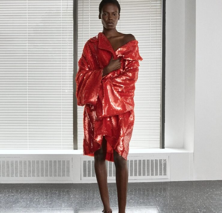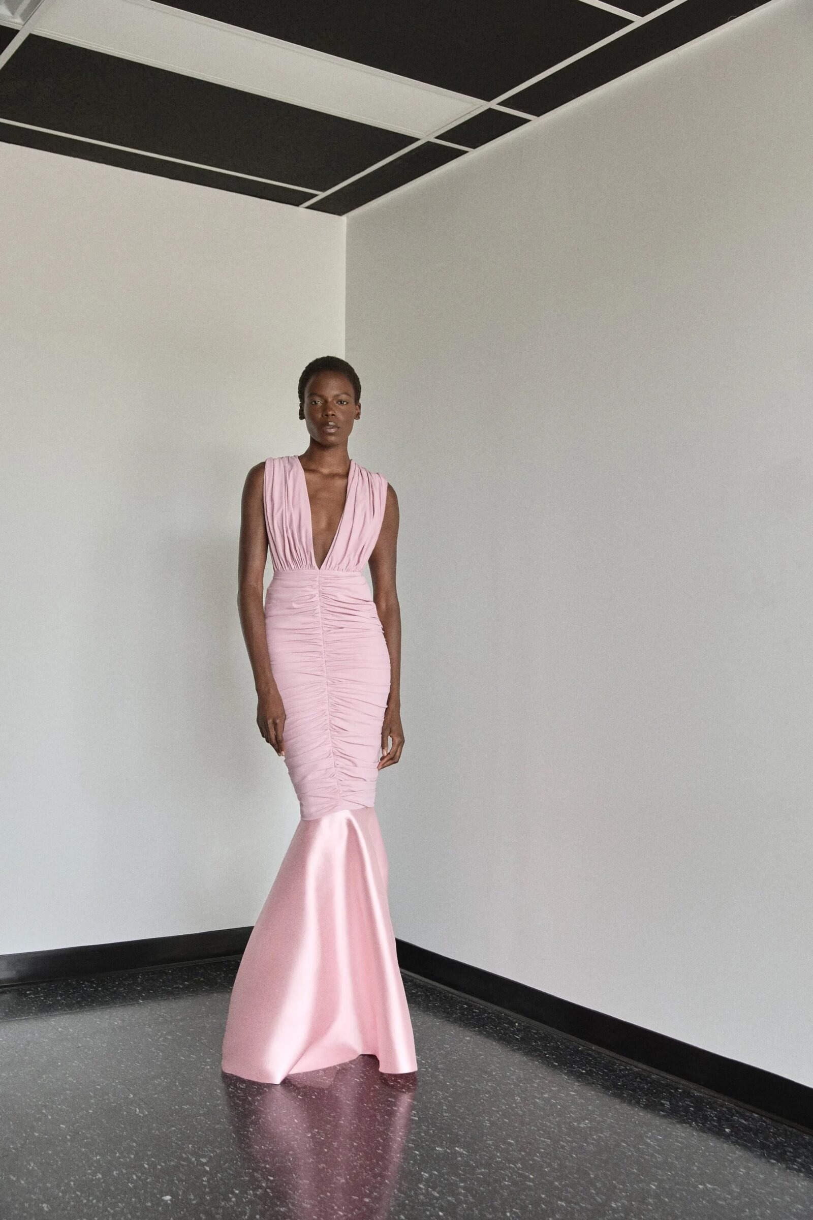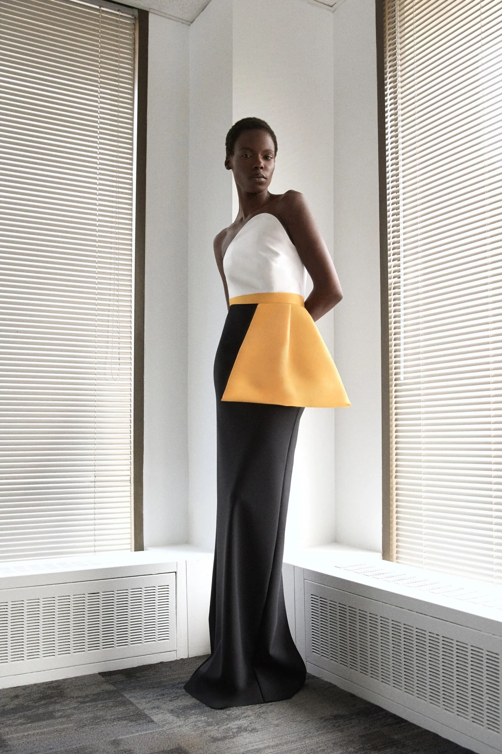Kirk Pickersgill of Greta Constantine turned to his Jamaican roots for Spring 2026, blending cultural pride with his signature red-carpet drama. Though raised in Canada, the designer recalled trips back to Jamaica, where music, bold colour, and family shaped his perspective.