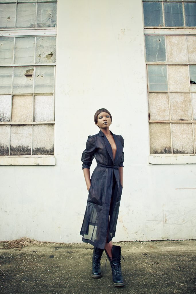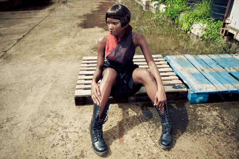 Shot against the stark, skeletal remains of the abandoned Bowen Marine building in Chaguaramas, Pearl Joseph stuns in Meiling, bringing a sharp, uncompromising edge to the designer’s signature minimalism. Noir dominates the palette, rendered in precise, architectural silhouettes that feel both modern and timeless. The stripped-down backdrop heightens the tension between elegance and decay, giving each look a raw, magnetic presence that refuses to fade into the shadows.