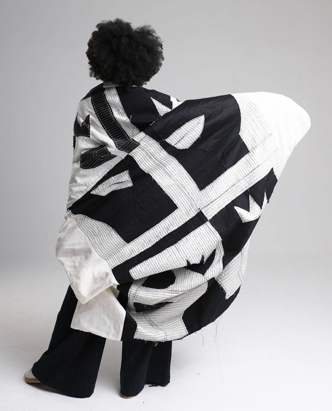 I’d place The Cloth’s sartorial cadence somewhere between griot and conduit; a wearable tome that speaks to the social swells, falls, decadence, and movement of the Caribbean diaspora. Inspired by “Caribbean people who have decided not to settle – like Orishas and Spiritual Baptists, CLR James, and Peter Minshall,” Young is a self-trained designer. The son of a trade unionist, his oversized, slouchy pieces feature daubs of revolution and Caribbean folklore.