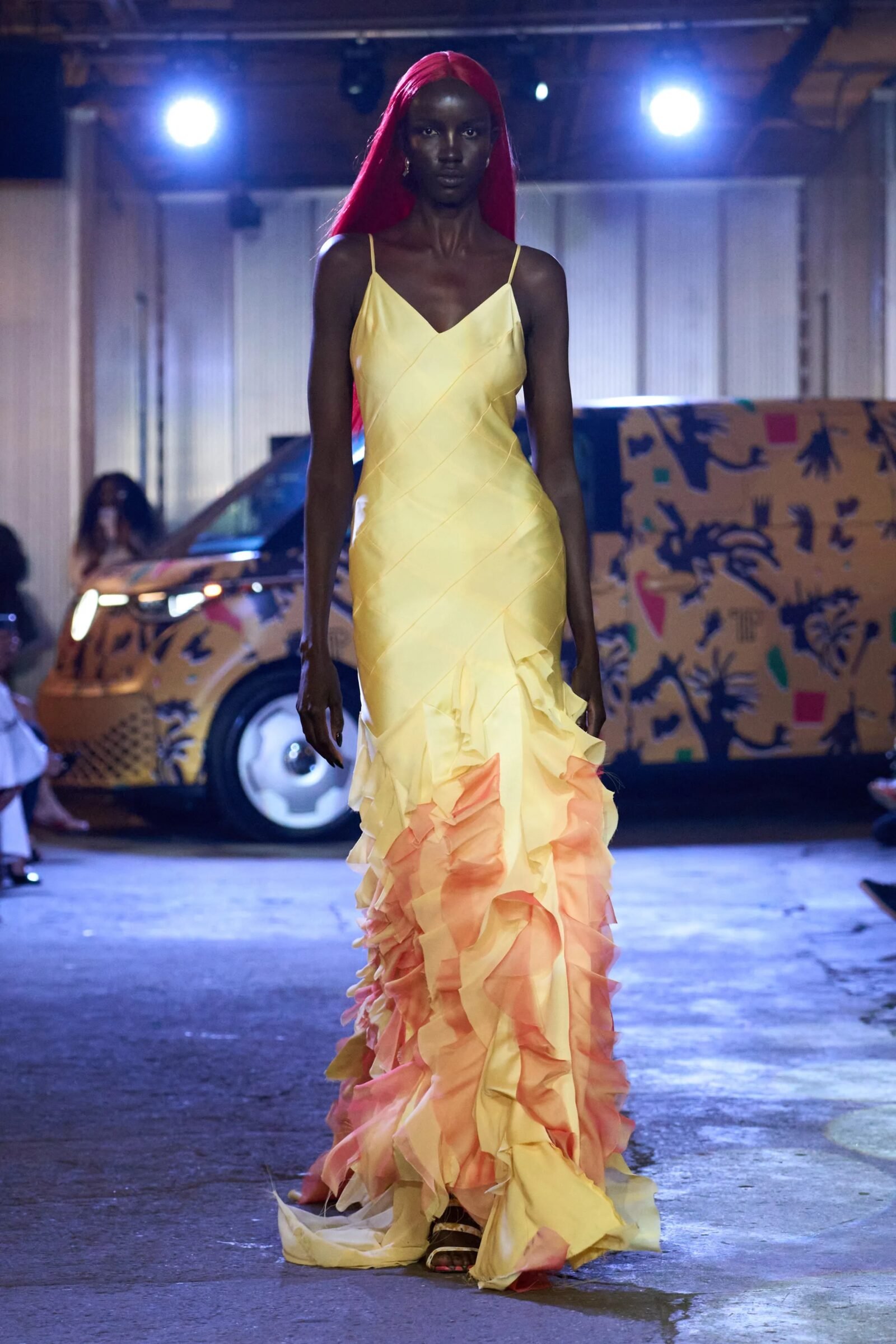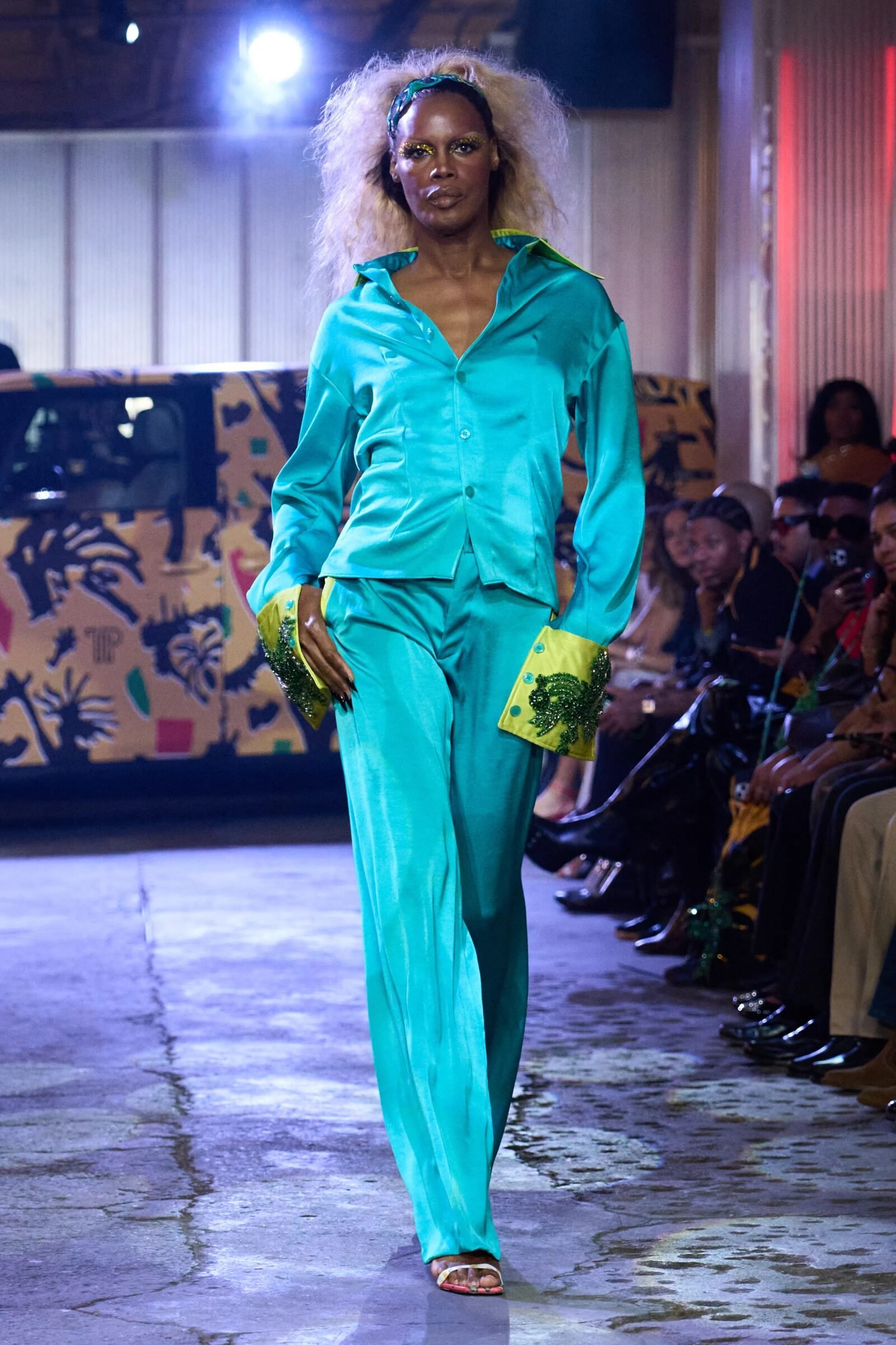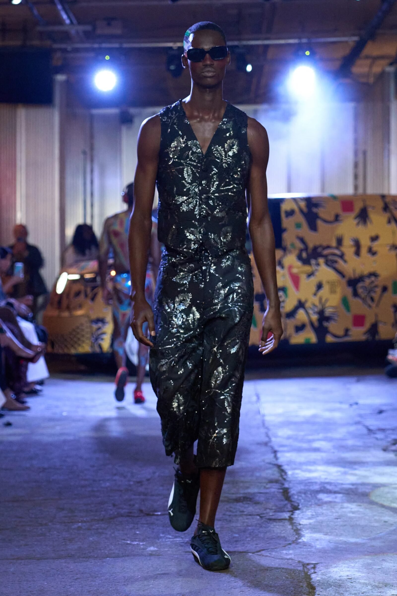 Theophilio returned to the runway with a sultry Spring 2026 collection that underscored Edvin Thompson’s flair for sex appeal and inclusivity. Fresh off the honour of having his sequined green trousers featured in the Met’s Superfine: Tailoring Black Style exhibition, the Jamaican designer leaned into confidence and ease.